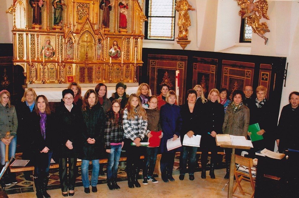 Der Kirchenchor, mit integrierter Schola Catorum, besteht derzeit aus 16 Damen und 2 stimmgewaltigen Herrn. Der Tenor wird von tiefen Altstimmen verstärkt. An großen Festtagen haben wir Verstärkung durch Mag. Hugo Mali und seiner Familie..